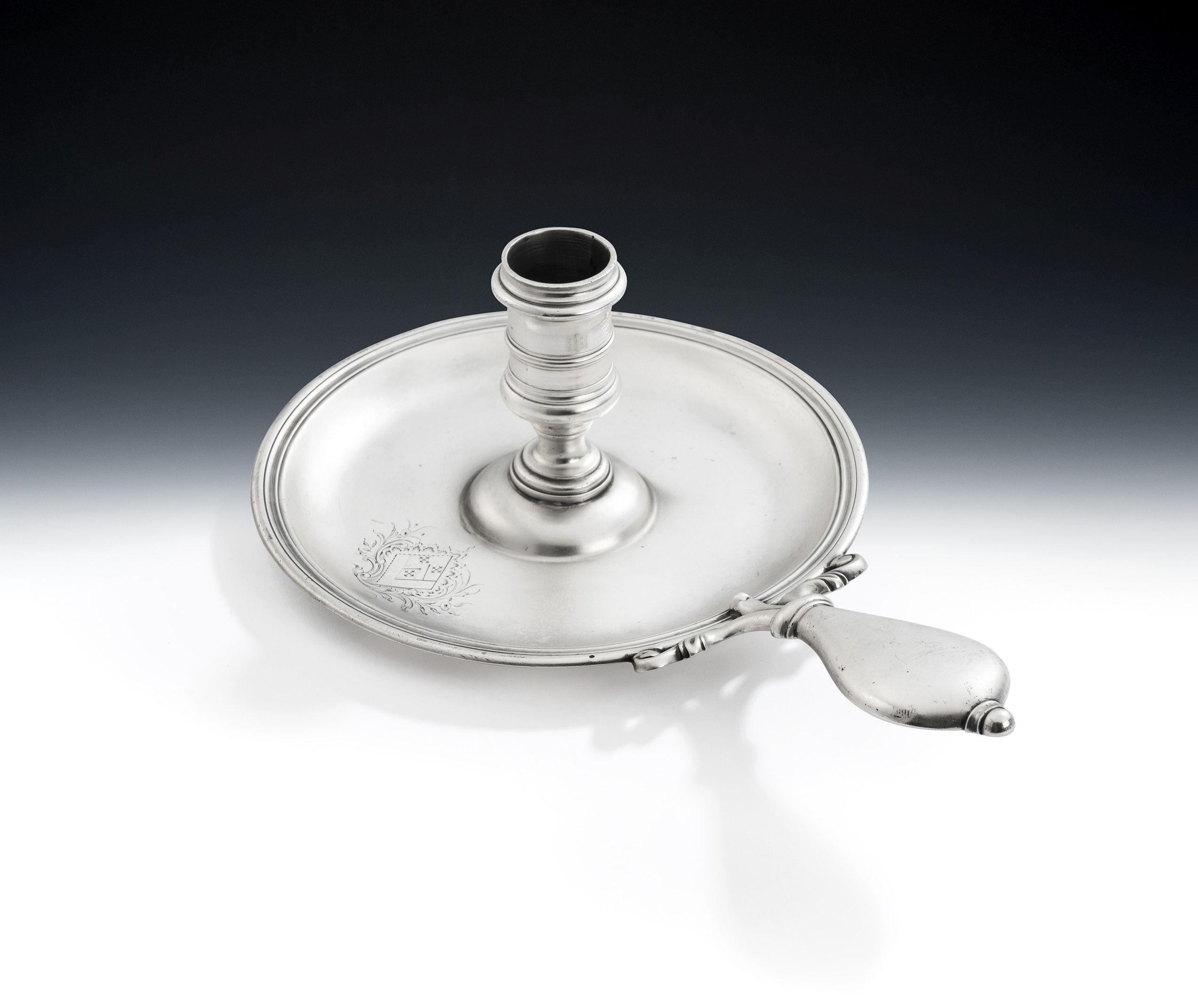 - A rare George II "Frying Pan" Chamberstick made in London in 1755 by John Cafe.