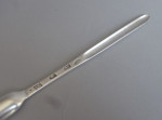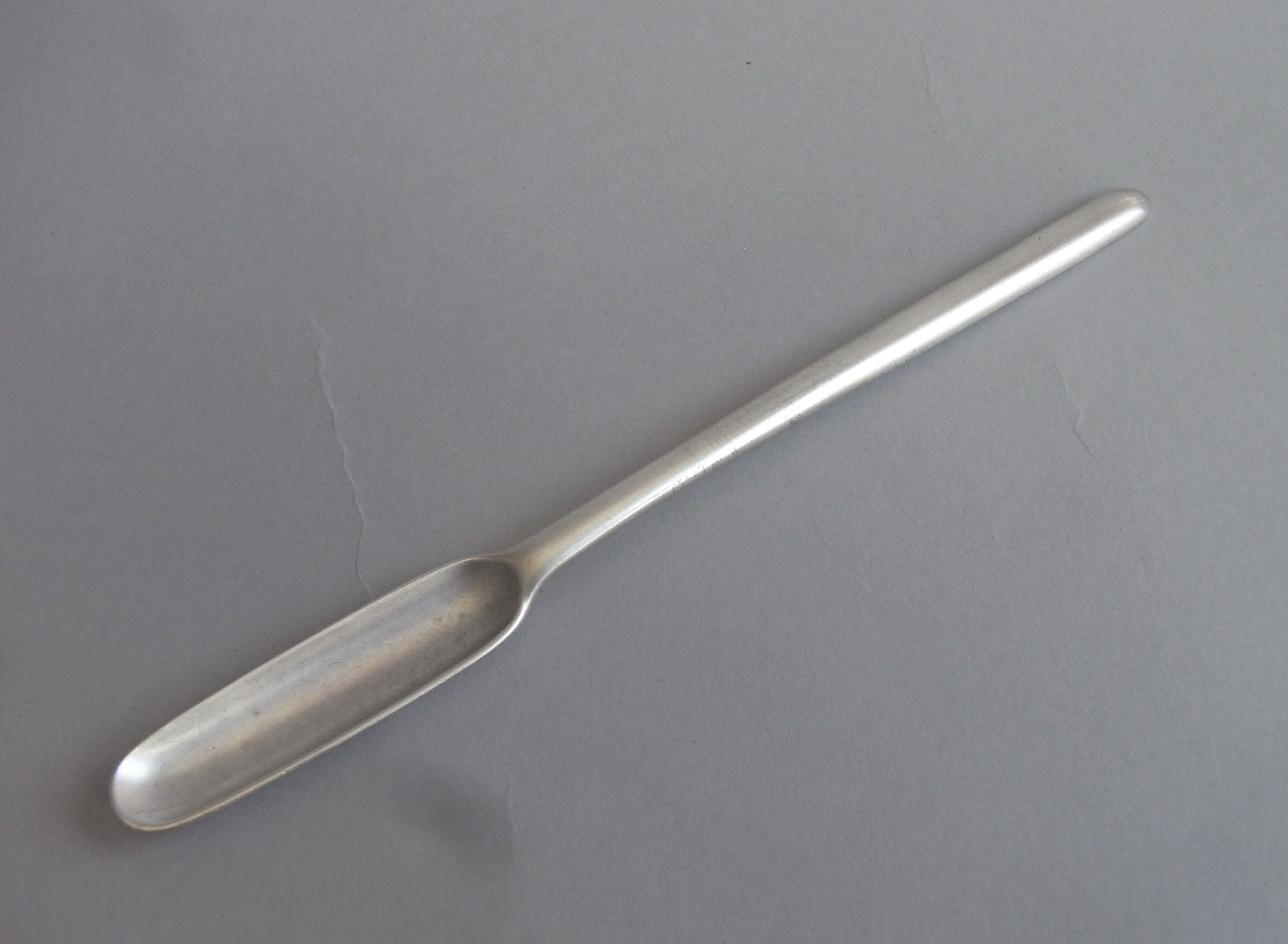 The Marrow Scoop is of typical form and plain in design. This one is unusually modelled in the reversible form, with the larger scoop facing one way and the smaller one the other. This example is in excellent condition, is of a very good gauge and is very well marked.