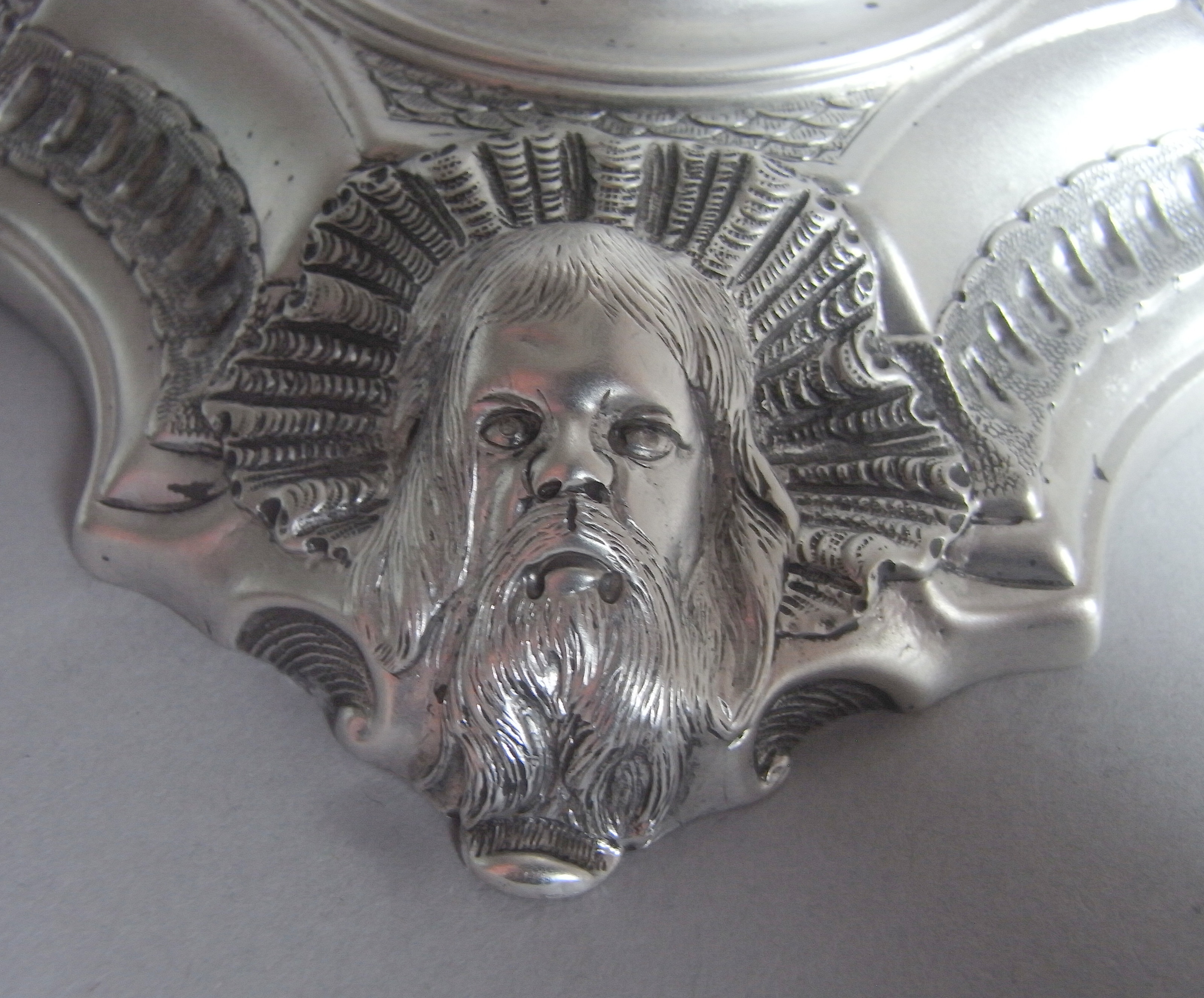 George Wickes was apprenticed to Samuel Wastell and had workshops in Panton Street, Haymarket, London when this exceptional Dish was made. Wickes was appointed to Frederick, Prince of Wales and the first ledger details a list of distinguished clients amongst others, The Duke of Devonshire and Chandos, Dowager Duchess of Norfolk, Marquess of Caernarvon, Earl Inchiquin and many "Lords". In the next volume he adds the Dukes of Kingston, Roxburgh, Montrose and Bridgewater, the Earl's of Scarborough, Kildare and others, Admiral Vernon and Arthur Onslow, the Speaker of the House of Commons. The account book of Frederick Price of Wales commences on 24th March 1735. Frederick had been living at quite some extravagant rate and in September 1737 he had been banished to Kew Palace. The most important piece in the Royal Collection by George Wickes is a beautiful Epergne designed by William Kent. There is little doubt that from 1735 onwards Wickes' clientele was as large and important (if not more so) than the great Paul De Lamerie.