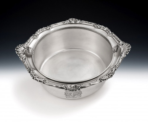This very rare silver gilt pepper caster stands on a circular pedestal foot decorated with a frieze of entwined linear bands. The main body, unusually, is decorated with engine turned engraving, enclosed by the same entwined bands, as seen on the foot. The pull-off cover, has a domed central section pierced with vertical pails and roundels. The pepper is in excellent condition and is of the quality of design and production which the John Emes workshop was famous for. The Caster is fully marked in the foot and with the sterling mark and date letter on the cover. It is rare to find one of these pepper casters, which are nearly always made by Emes. It is also a very early date to find engine turning being used, as a form of decoration, on a piece of silver. A.G. Grimwade in his work, "London Goldsmiths 1697-1837" emphasises that, "his work shows a taste for elegant design and fine finish." This is certainly seen with this caster.