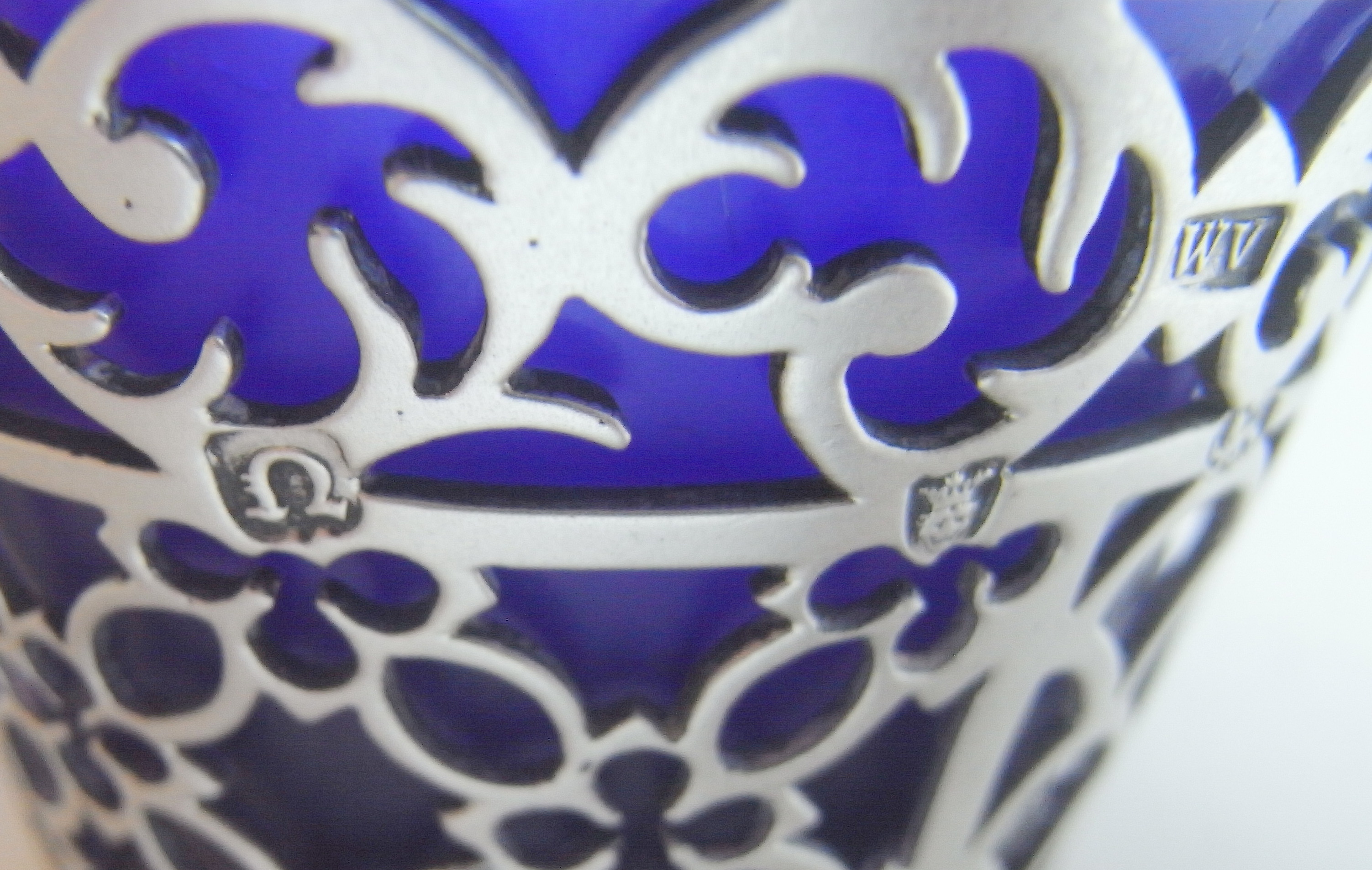 The Cream Pail is modelled in the form of a Milk Maid's Pail, with tapering sides and a corded base and rim. The sides, however, are most unusual pierced with three different panels, each of different designs. The upper section of the main body displays a horizontal frieze of cascading scrolls above two different designs, one of stylised scale work and one of stylised raying flower heads, centred by quatrefoils. The pail has a twisted wirework handle and blue glass liner. It is in excellent condition and very well marked. This is the only time we have encountered this design of pail. William Vincent is known for the production of fine pierced items and tea wares. He had workshops at 8, St. Ann's Lane, Wood Street, 1766-93.
