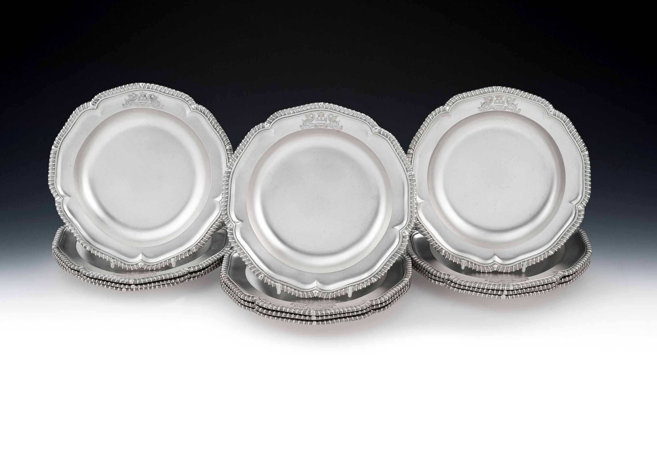 The Merton Hall Soup Plates. An extremely fine set of twelve George IV Soup Plates made in London in 1823 by John Mewburn.