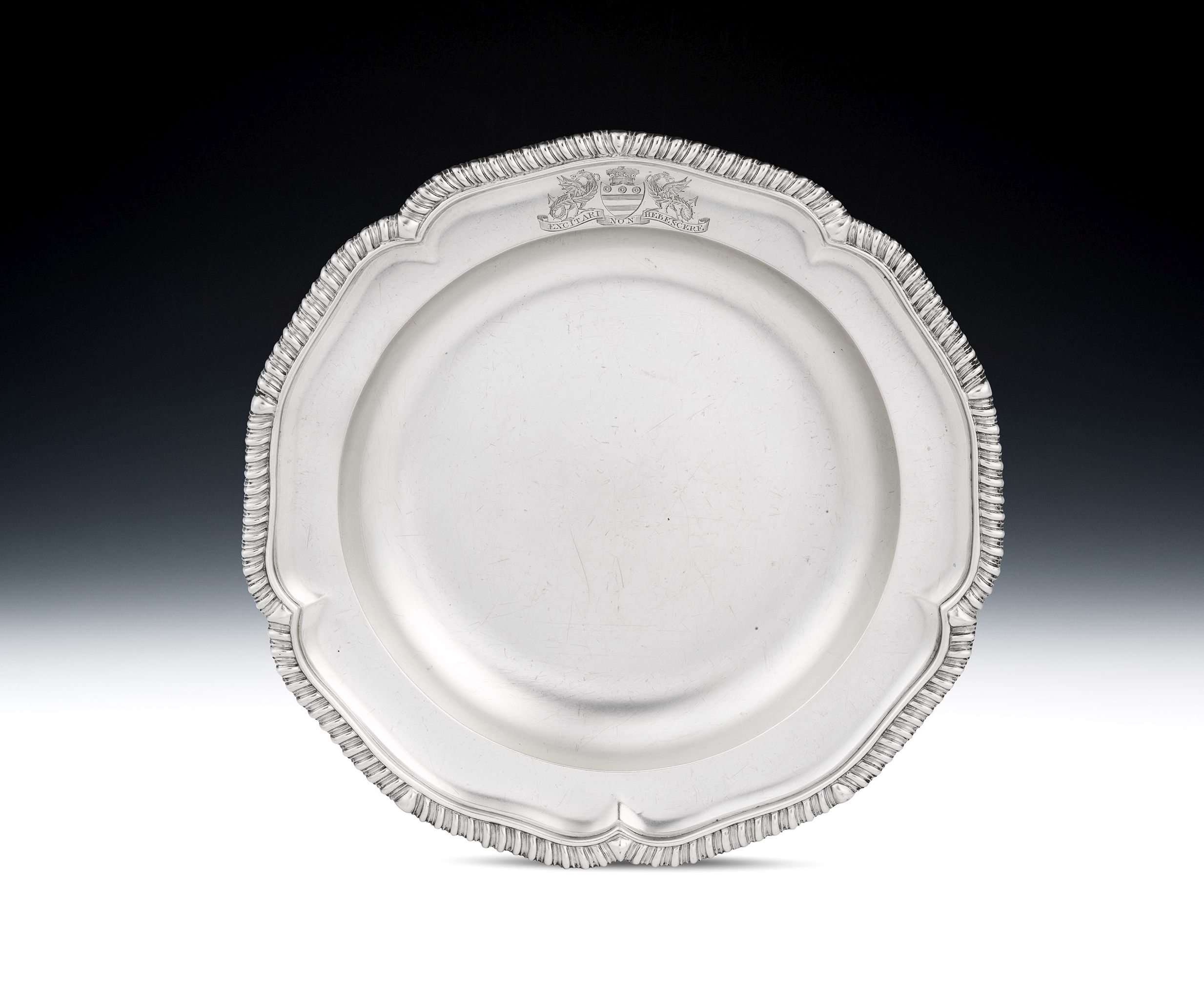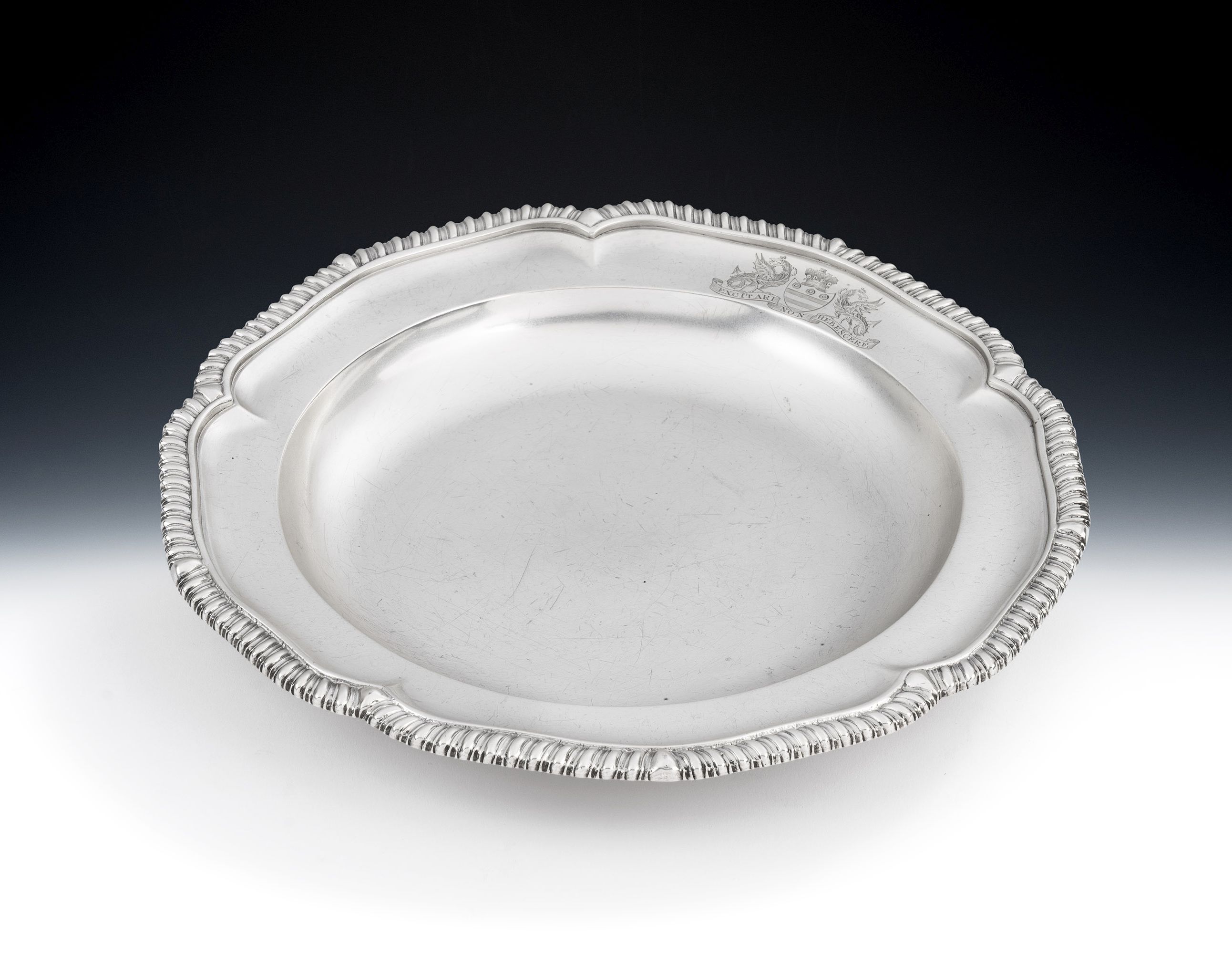 The Soup Plates are circular in form with a raised shaped rim decorated with gadrooning. The border is engraved with a contemporary Armorial with the Motto " Excitari Non Hebescere - To be spirited, not Sluggish", engraved on a banner below. This is all surmounted by the Coronet of a Baron. The Plates are all in excellent condition and are each very well marked on the reverse.