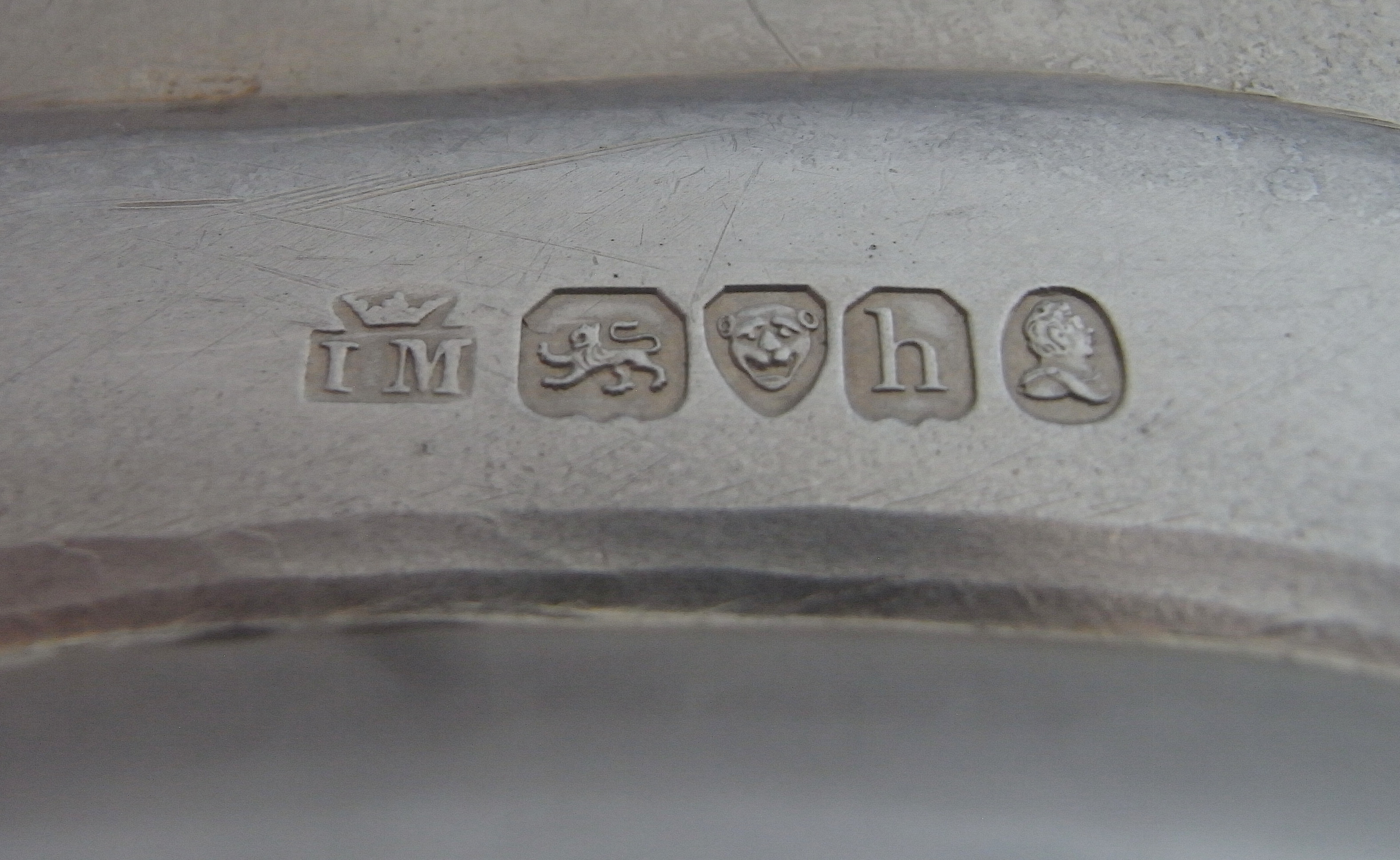 It would appear that John Mewburn specialised in the production of the components of the Georgian silver dinner service. He was apprentice to John Crouch and was free 4th July, 1792. His first mark was entered on 2nd October, 1793. He had workshops in Abingdon Row, Goswell Road, London, when these fine soup plates were made.