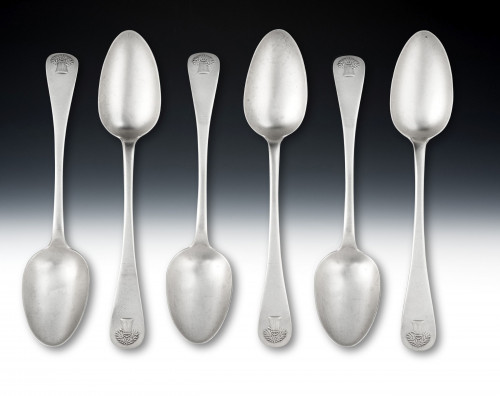 Irish fruit strainers were not made in large quantities, especially in this unusual size and are extremely rare. This piece has an Irish feel to the design and displays two solid flat handles with wavy cut scroll edges. The circular bowl rises to a reeded rim and the deep bowl is pierced with concentric bands of circles and an upper band of scroll work. The underside of the handle is engraved with the original scratch weight. The strainer is very well marked on the underside of the handles and in the bowl. Alexander Brown was an important silversmith who had workshops in College Green when this piece was made. He attained the position of Freeman of the Goldsmiths company 1726-38. This piece is in excellent condition and has a very good colour. A similar strainer is shown on page 254, fig 9 of " Irish Georgian Silver" by Douglas Bennett.