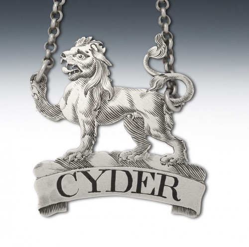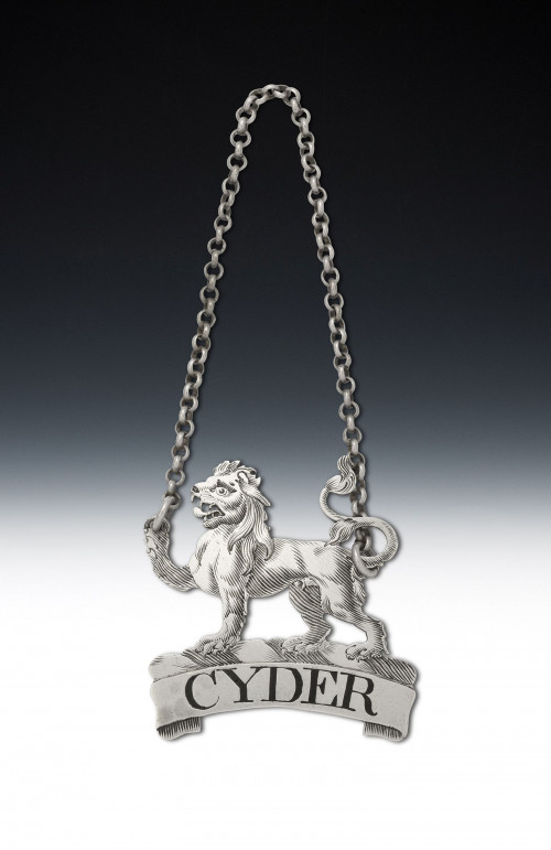 The Label is oval in form with a double thread edge and is engraved for SHERRY. This example has a shield above, flanked by two scroll supporters, which is engraved with a contemporary Crest. The label is very well marked on the reverse. Labels from Newcastle are scarce, especially modelled in this unusual heraldic design.