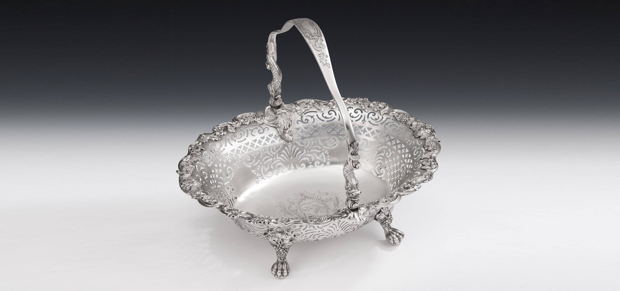 An extremely fine George II bACCHUS bREAD/fRUIT Basket made in London in 1747 by Thomas Gilpin.