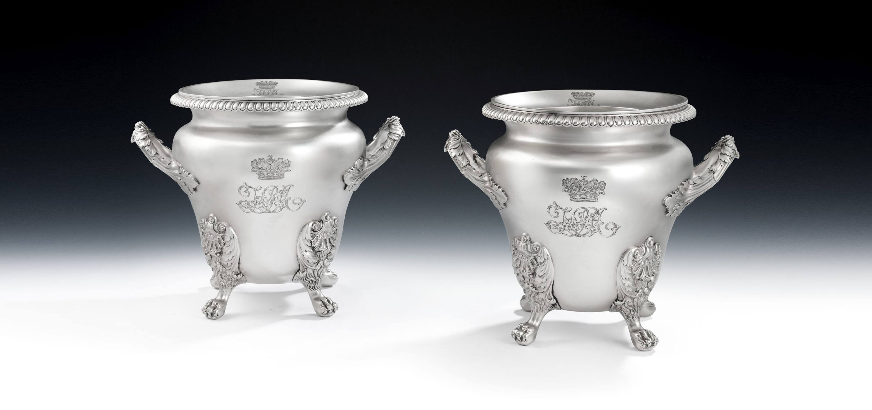 HARRIETT MELLON DUCHESS OF ST ALBANS. aN IMPORTANT PAIR OF gEORGE IV Wine Coolers made in London in 1823 by William Bateman.