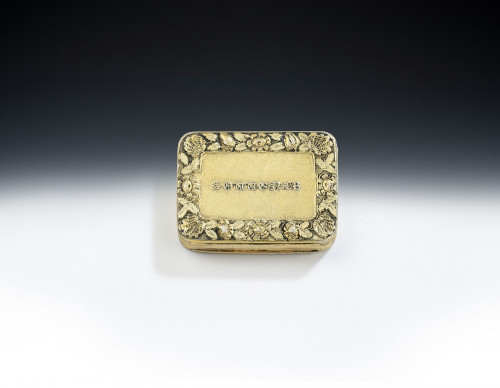 The Salver stands on three cast panel feet with scroll ends, and a beaded border. The raised rim is also decorated with a beaded band and the centre is beautifully engraved with a contemporary Armorial, with Crest above, all surrounded by a bluebell drop and floral garland cartouche. The Salver is in excellent condition, has a good colour and is very well marked, as would be expected from these famous Salver makers. The Arms and Crest are those of the Asketine family of West Peckham, County Kent.
