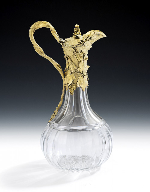 The Candlesticks stand on a square base, with sunken well, which is decorated with gadrooning. The faceted shaped stems are also decorated with gadrooning. Each has a pull-off square nozzle with a gadrooned border. The base of each candlestick and the nozzles are engraved with a contemporary Crest. The Candlesticks are each fully marked in the base.