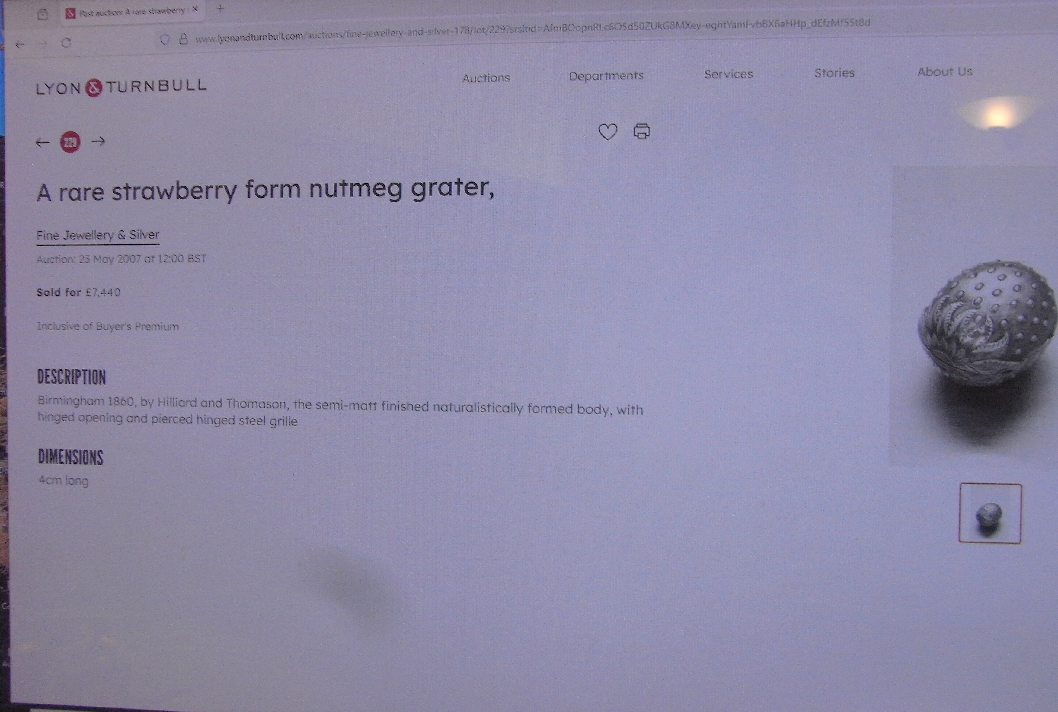 - A very rare Naturalistic "Strawberry" Nutmeg Grater made in Birmingham in 1856 by Hilliard & Thomason.