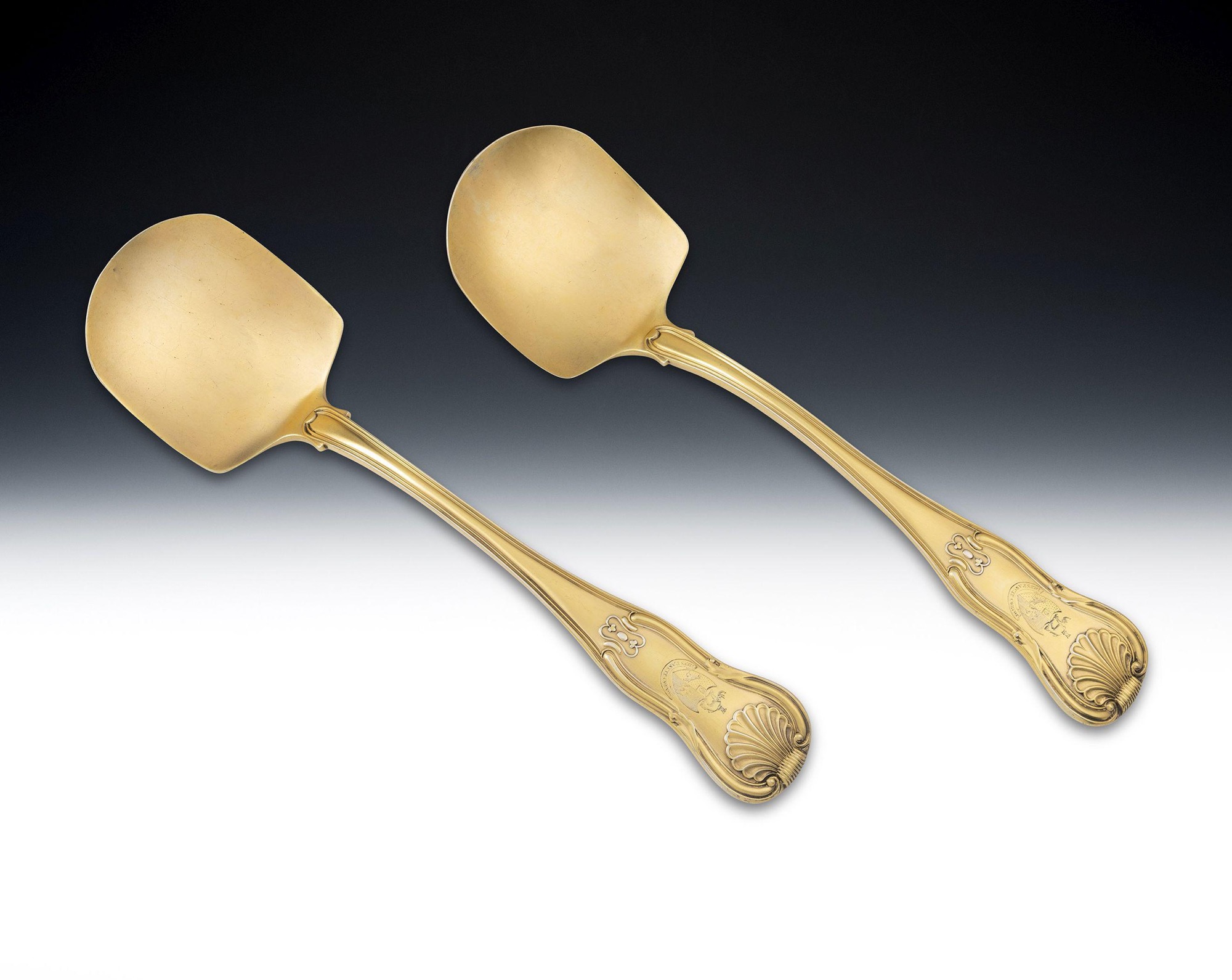An exceptionally fine pair of George III Silver Gilt Ice Spades made in London in 1819 by William Eley, William Fearn & William Chawner.