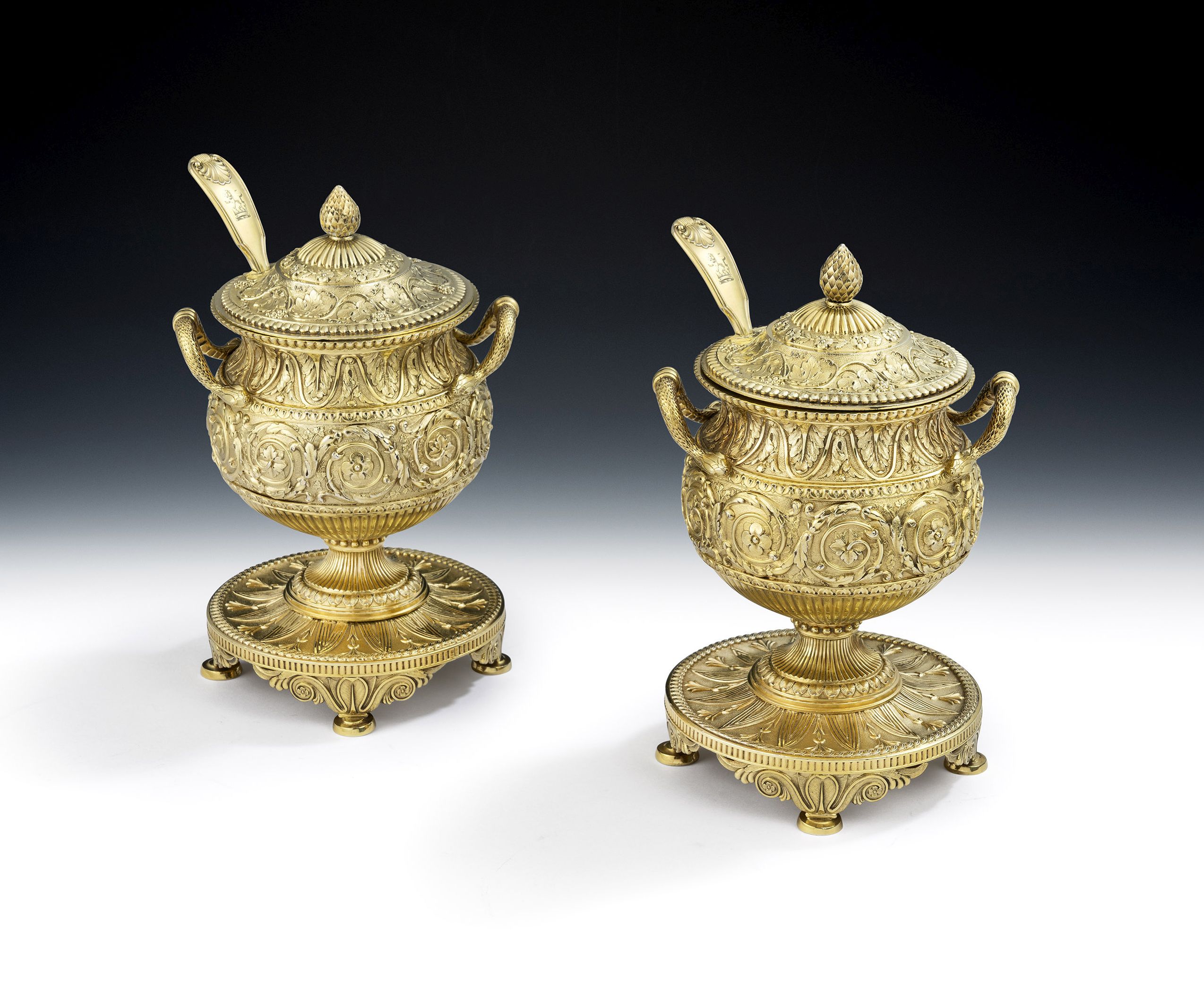 - An important pair of George III Silver Gilt Sugar Vases & Covers made in London in 1810 by Benjamin & James Smith.