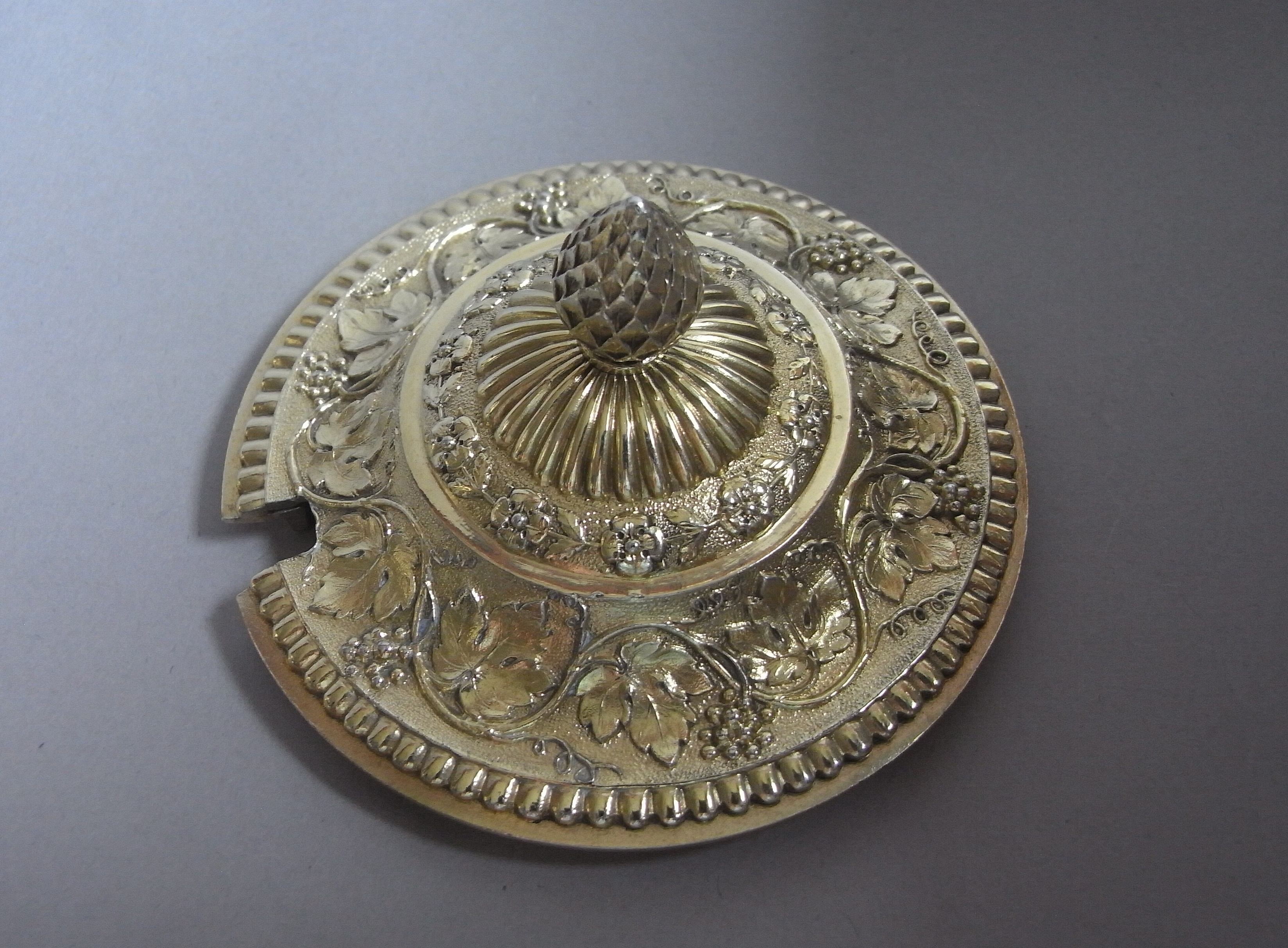 The first known examples were produced by Scott and Smith probably no earlier than 1805. A set of four vases of the same year by Digby Scott and Benjamin Smith sold at Christie's, London, July 1, 1953, lot 111 from the collection of Earl Howe. Paul Storr also produced the design, manufacturing a set of four for the 1st Earl of Harewood in 1814 which was sold at Christie's, London, June 30, 1965, lot 101. Another set of four by Paul Storr of 1816/17 is illustrated in J. Bliss, The Jerome and Rita Gans Collection of English Silver, n.d., pp. 132-35.