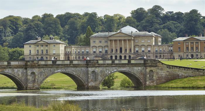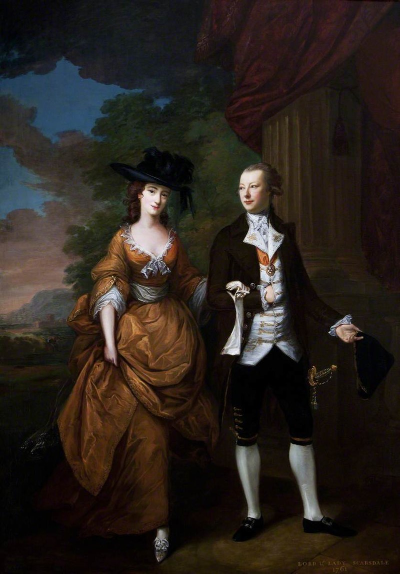 Curzon had started work on the development of Kedleston Hall before he inherited, having employed the landscape gardener William Emes to replace the formal water features with natural lakes. In 1759 he commissioned the rebuilding of the house, designed in the Palladian style by the architects James Paine and Matthew Brettingham. Robert Adam was designing some garden temples to enhance the landscape of the park at the time and Curzon was so impressed with Adam's designs that Adam was quickly put in charge of the construction of the new mansion. A painting of Baron Scarsdale and his wife Lady Caroline is shown painted by Nathaniel Hone the Elder in 1761. Kedleston Hall is considered one of the finest house in England and an image is also shown, together with the dining room where the box may have been used.