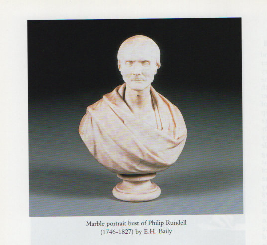 Philip Rundell was apprentice to Joseph Rogers of Bath, arriving in London in 1767 as shop man to Theed and Pickett of Ludgate Hill. He was made a partner in 1772 and acquired sole ownership of the business in 1785-6. He took John Bridge into partnership in 1788 and his nephew Edmund Walter Rundell by 1803, the firm being styled Rundell, Bridge & Rundell from 1805. Rundell's was the largest silver retailer of the Regency period. They set the standard during the nineteenth century for both the organisation of the silver trade and its promotions of artistic designs. A print of the shop exterior of Rundell, Bridge & Rundell is shown, which was situated by St. Paul's Cathedral at the top of Ludgate Hill. They were appointed Goldsmith and Jeweller to the King in 1797 and took Paul Storr into working partnership in 1807, an arrangement which lasted until 1819, when Rundell entered his own mark from workshops in Dean Street, Soho. He died in 1827, leaving his fortune of £ 1.25 million to his nephew Joseph Nield, one of the largest estates ever proved. When Neild died he left his entire estate to Queen Victoria, which hugely increased the wealth of the British Monarchy.