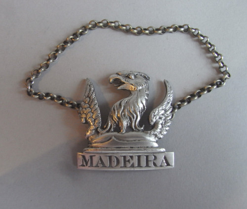 The Label is oval in form with a double thread edge and is engraved for SHERRY. This example has a shield above, flanked by two scroll supporters, which is engraved with a contemporary Crest. The label is very well marked on the reverse. Labels from Newcastle are scarce, especially modelled in this unusual heraldic design.